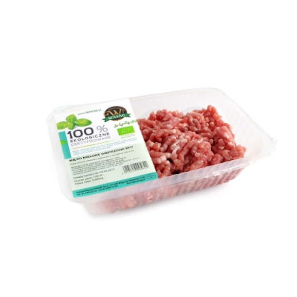 !!! zamówienia na mięso i wędliny firmy Wasąg przyjmujemy do piątku, do godziny 10,00 !!! Gwarantowany termin przydatności do spożycia 2 dni. Wyrób surowy, mięsny, rozdrobniony, produkowany z mięsa wieprzowego eko. Powierzchnia czysta, gładka. Barwa mięsa różowo-czerwona, tłuszczu biała. Smak i zapach charakterystyczny dla mięsa surowego wieprzowego. Pakowane w atmosferze ochronnej. Brak alergenów, w tym glutenu.