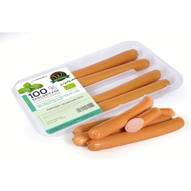 Skład: mięso drobiowe* 86,4%, sól, naturalne przyprawy*, tkanka łączna drobiowa* (kurczak), cukier trzcinowy*, sól peklująca (*certyfikowany składnik ekologiczny)