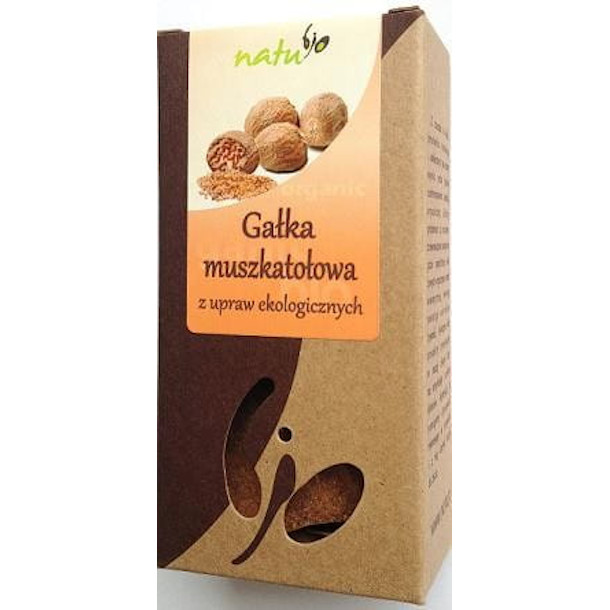 Skład: gałka muszkatołowa bio. Przyprawa o mocnym korzennym aromacie i słodkawo gorzkim smaku. Najbardziej znana jako składnik mieszanek przyprawowych do pierników. Zmieloną lub utartą gałkę dodaje się do potraw warzywnych, farszów mięsnych, pasztetów i deserów.