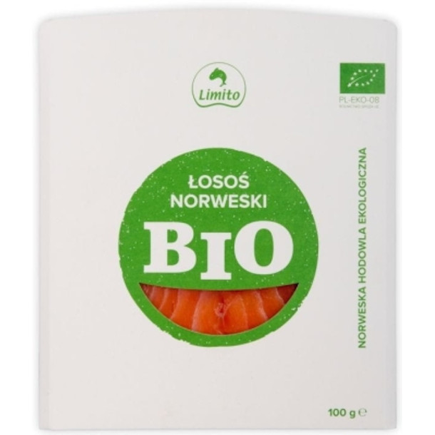 Gwarantowany termin przydatności do spożycia min. 8 dni. Wyhodowany w Norwegii. Łosoś bio wędzony jest naturalnym dymem powstającym w tradycyjnym procesie wędzenia drewnem bukowym. Do jego przygotowania używa się innych pieców niż dla łososia nieorganicznego. Wędzenie na zimno znaczy, że obróbka termiczna odbywa się w temperaturze nieprzekraczającej 30 stopni C. Ości są z ryby usuwane, jednak istnieje możliwość pojawienia się ości w produkcie. WARTOŚĆ ODŻYWCZA W 100 g Warość energetyczna: 849 kJ / 203 kcal; Tłuszcz: 12,2 g; w tym kwasy tłuszczowe nasycone: 2,5 g Węglowodany: 0,2 g; w tym cukry: 0,2 g; Białko: 23,4 g; Sól: 2,8 g