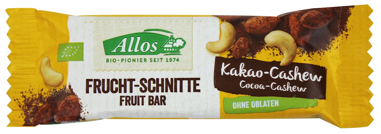 SKŁAD: rodzynki* (30%), suszone daktyle, orzechy nerkowca* (14%), odtłuszczone kakao w proszku* (10%), migdały prażone* (9%), pestki moreli*, miód* (6%), syrop z agawy*, skrobia ziemniaczana*, olej słonecznikowy * (*certyfikowany składnik ekologiczny)
