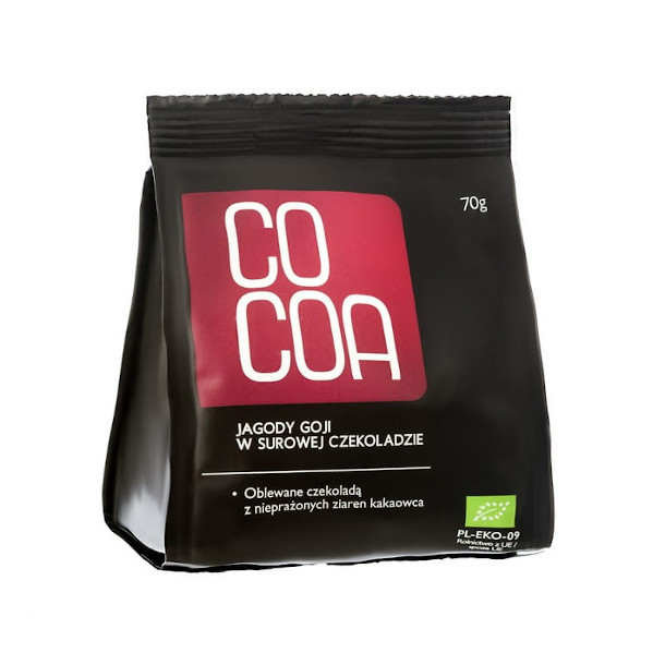 Skład: czekolada* 65% – ziarno kakaowca*, cukier palmowy*, masło kakaowe* – zawartość masy kakaowej 60%, jagody goji* 35%. *składniki pochodzące z upraw ekologicznych.