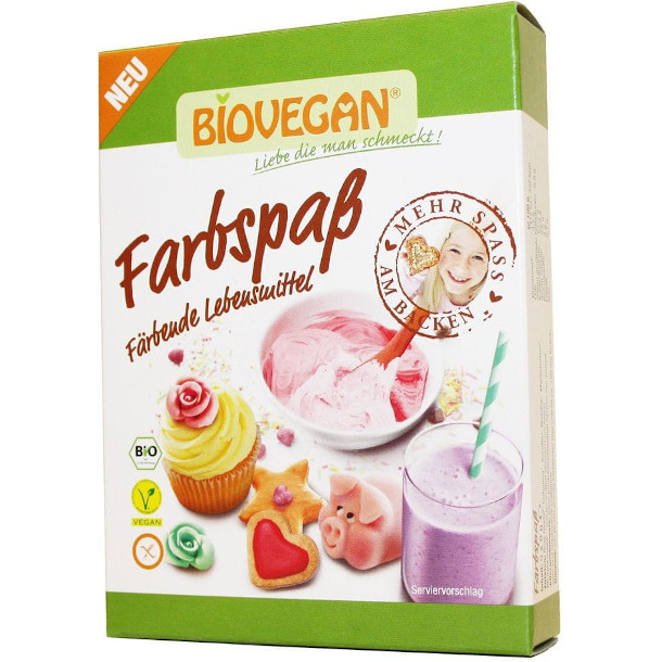 Gwarantowany termin przydatności do spożycia min. 180 dni. Produkt odpowiedni dla wegan. Może zawierać drożdże, kukurydzę, orzechy, gorczycę, sezam, soję. Doskonałe do barwienia kremów, lodów, deserów, polew do ciast, lukru, napojów, marcepanu itd. w sposób całkowicie ekologiczny. Kolory: czerwony, żółty, pomarańczowy, zielony, różowy / fioletowy w jednym pudełku. Dostarczają większej ilości zabawy podczas pieczenia i gotowania. W zależności od żądanej intensywności koloru, rozpuścić na gładko 1 saszetkę wybranego barwnika w odrobinie (1 łyżka stołowa, dla zielonego barwnika 2 łyżki stołowe) wody o temperaturze ciała. Aby proszek w pełni rozwinął swoją barwę należy pozostawić mieszankę na 5 minut. Następnie jeszcze raz dobrze zamieszać i po uzyskaniu żądanej barwy, dodawać po trochu barwnik do środka spożywczego. Barwnik spożywczy może znacząco zmienić kolor w poszczególnych produktach spożywczych. UWAGA Saszetka z zielonym barwnikiem (8 g) zawiera ok. 150 mg kofeiny. WARTOŚĆ ODŻYWCZA W 100 g Wartość energetyczna: 1415 kJ / 337 kcal; Tłuszcz: 3,50 g; w tym kwasy tłuszczowe nasycone: 0,90 g; Węglowodany: 67,70 g; w tym cukry: 36,90 g; Błonnik: 7,50 g; Białko: 9,00 g; Sól: 0,10 g