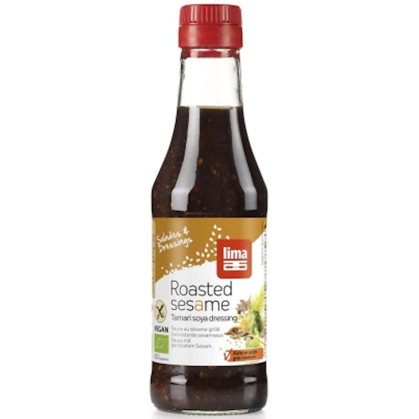 Gwarantowany termin przydatności do spożycia min. 60 dni. Produkt odpowiedni dla wegan. Zawiera soję. Aromatyczny dressing z prażonym sezamem stanowi doskonałe wykończenie do sałatek i dań na zimno. Udział oryginalnego sosu tamari wzbogaca potrawy o charakterystyczną nutę smakową. Jest wygodny w użyciu, nadaje się do marynowania, mieszanek, sałatek. Idealnie komponuje się z gotowanymi warzywami, produktami białkowymi i zbożowymi, oraz ryżem. WARTOŚĆ ODŻYWCZA W 100 g Wartość energetyczna – 1152 Kj / 276 kcal Tłuszcz – 17,6 g w tym kwasy tłuszczowe: nasycone – 2 g Węglowodany – 23,7 g w tym cukier – 4,5 g Białko – 4,7 g Sól – 3,25 g