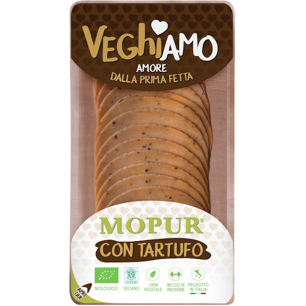 SKŁAD: woda, gluten z pszenicy* 32%, mąka pszenna durum* 8%, mąka z ciecierzycy*, oliwa z oliwek*, naturalne aromaty, kostka truflowa 2%, sos tamari* (woda, soja*, sól, shochu* (woda, ryż*, sól), prażone ziarno soi*), olej kokosowy*, mąka pszenna*, sól, mieszanka przypraw i aromatycznych ziół, płatki ziemniaczane* (*certyfikowany składnik ekologiczny)