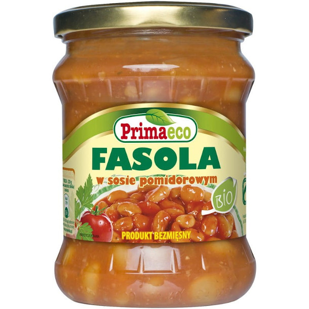 Skład: woda, fasola* 67%, koncentrat pomidorowy* 15%, cebula*, cukier trzcinowy*, skrobia kukurydziana*, przyprawy*, olej słonecznikowy*, sól morska, substancja zagęszczająca – guma guar, przeciwutleniacz – witamina C. * składniki z upraw ekologicznych.
